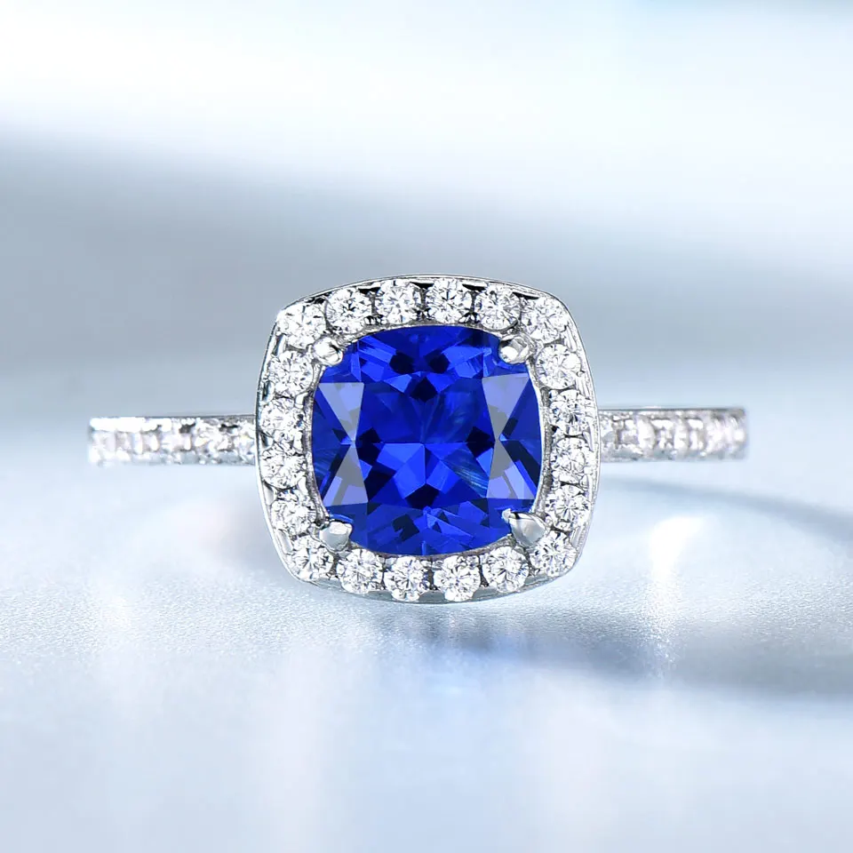UMCHO Blue Sapphire Gemstone Ring 100% 925 Sterling Silver Rings For Women Wedding Engagement Party Band Brand Fine Jewelry New