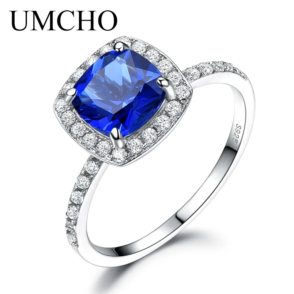 68% OFF!! UMCHO Blue Sapphire Gemstone Ring 100% 925 Sterling Silver Rings For Women Wedding Engagement Party Band Brand Fine Jewelry New