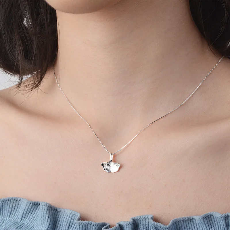 Amaiyllis Fashion Simple s925 Sterling Silver Apricot Leaf Necklaces Pendants Silver Leaf Chain Clavicle Necklaces For Wholesale