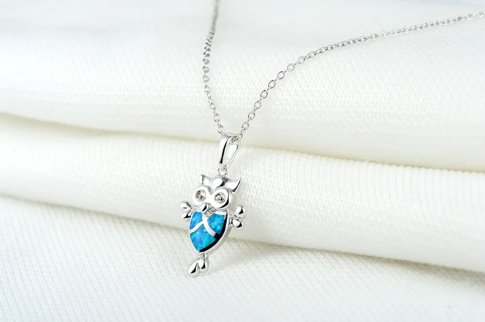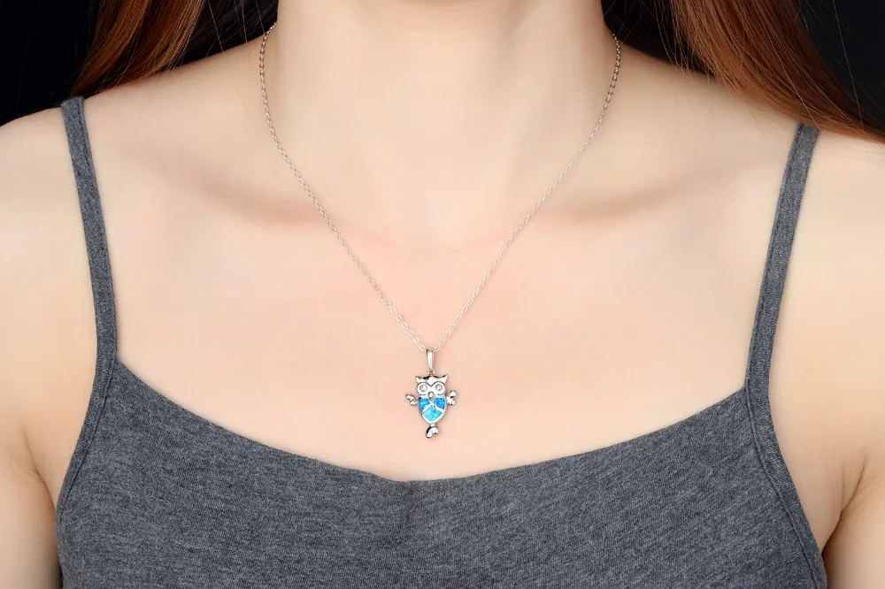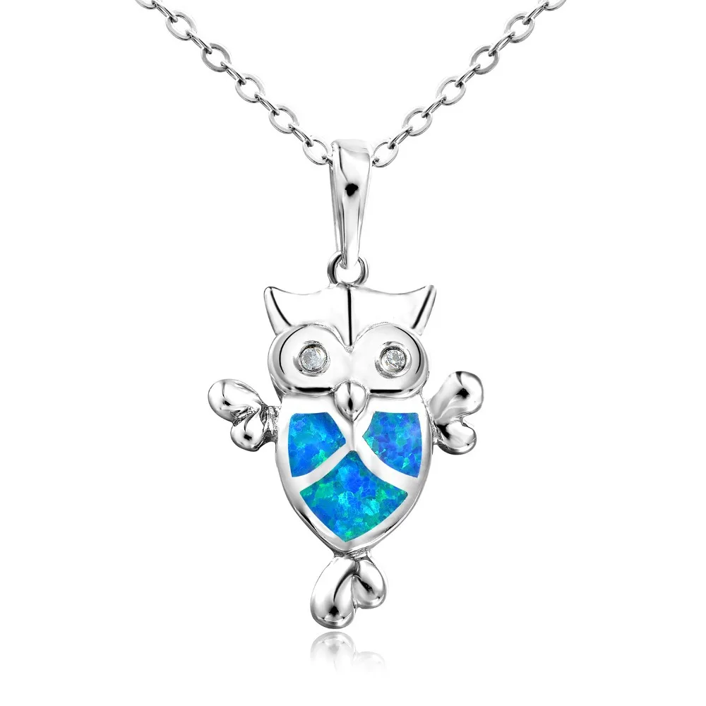 DORMITH 925 sterling silver necklace synthesis opal Owl pendants necklace rhodium plating for women fashion jewelry DP0197
