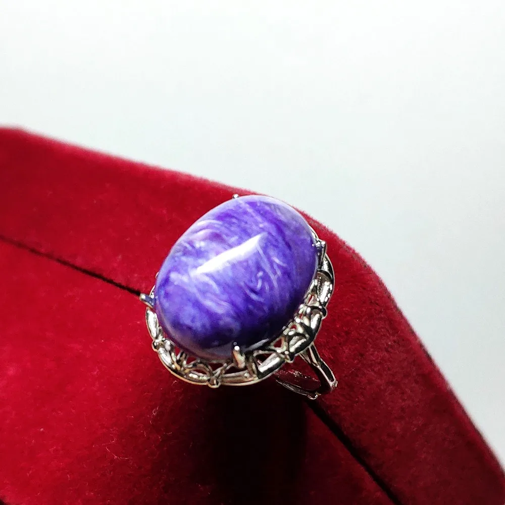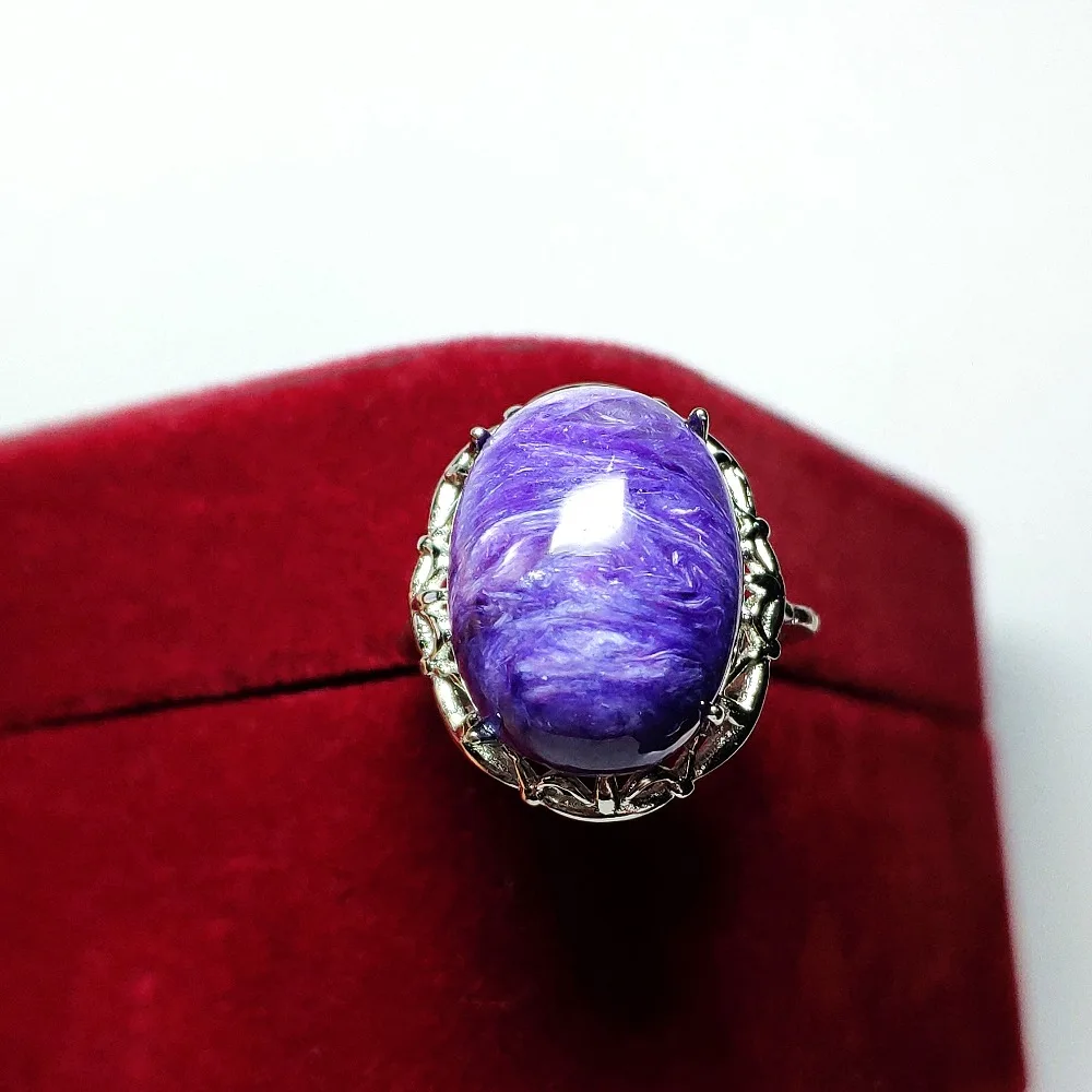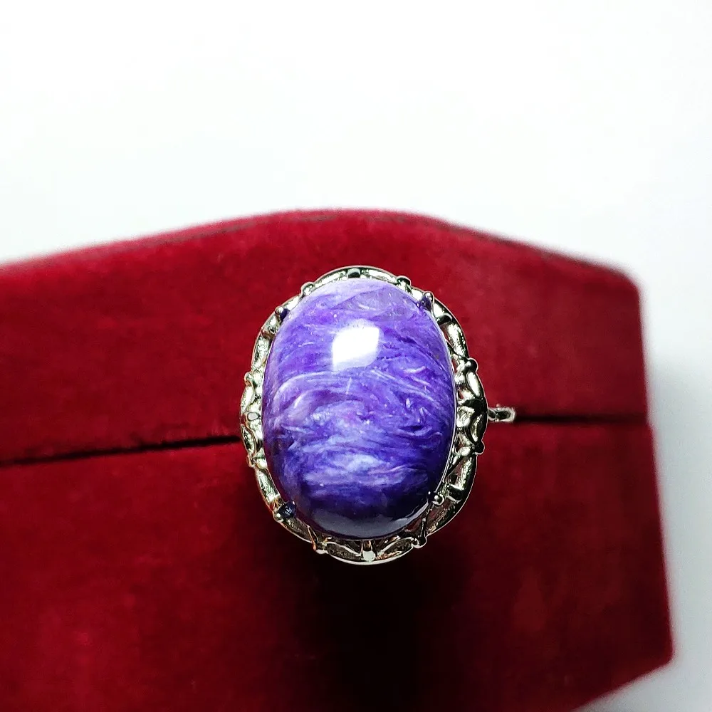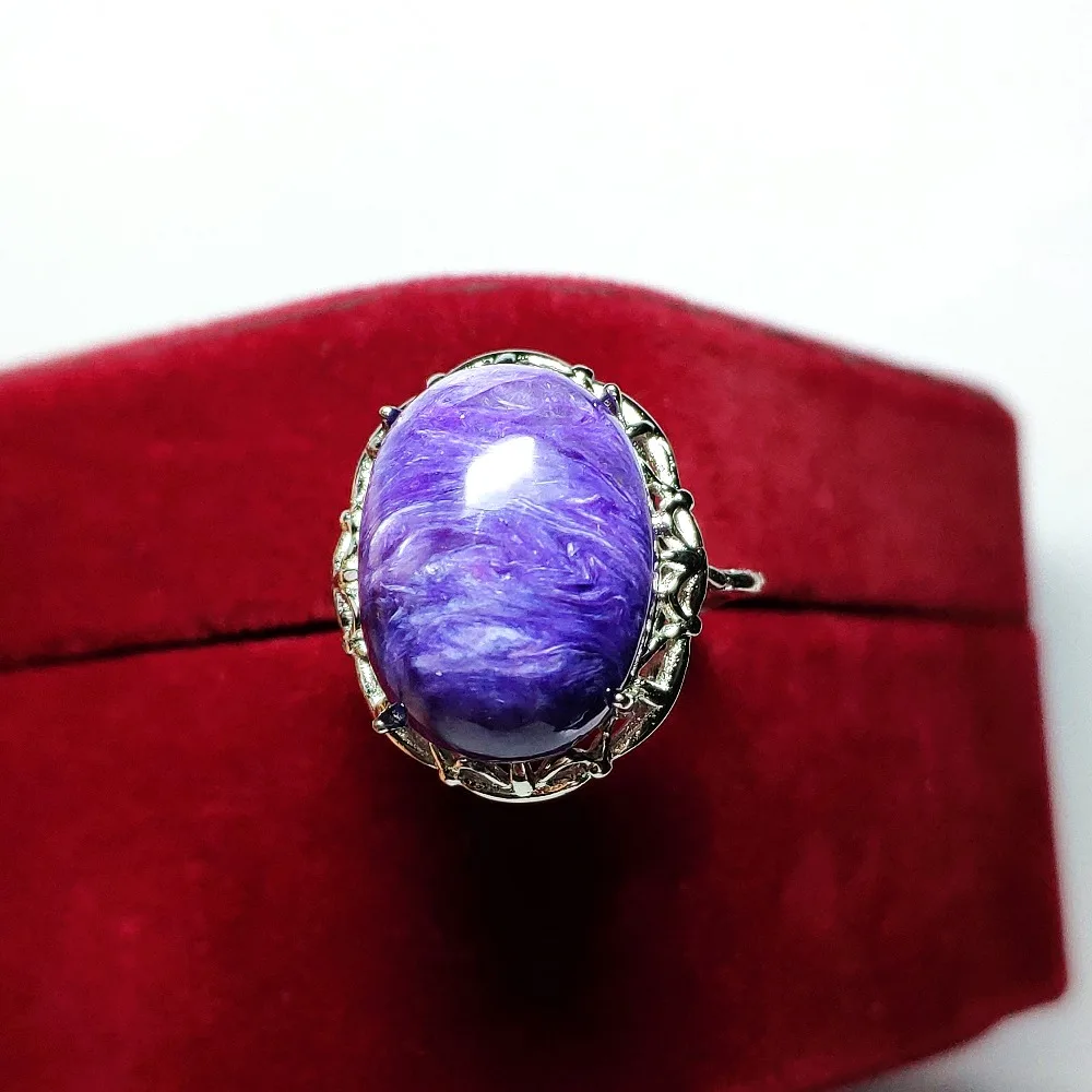 Discount Newly Natural Purple Charoite Woman Ring Adjustable All Size Reiki 925 Silver 16x12mm Best Gift Charoite Drop Shipping AAAAA only $20.00
