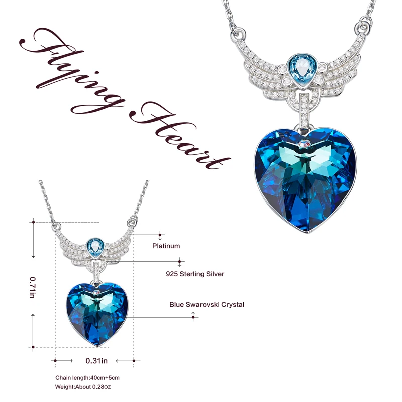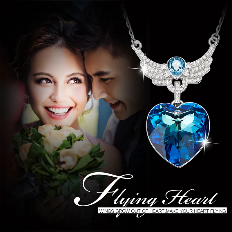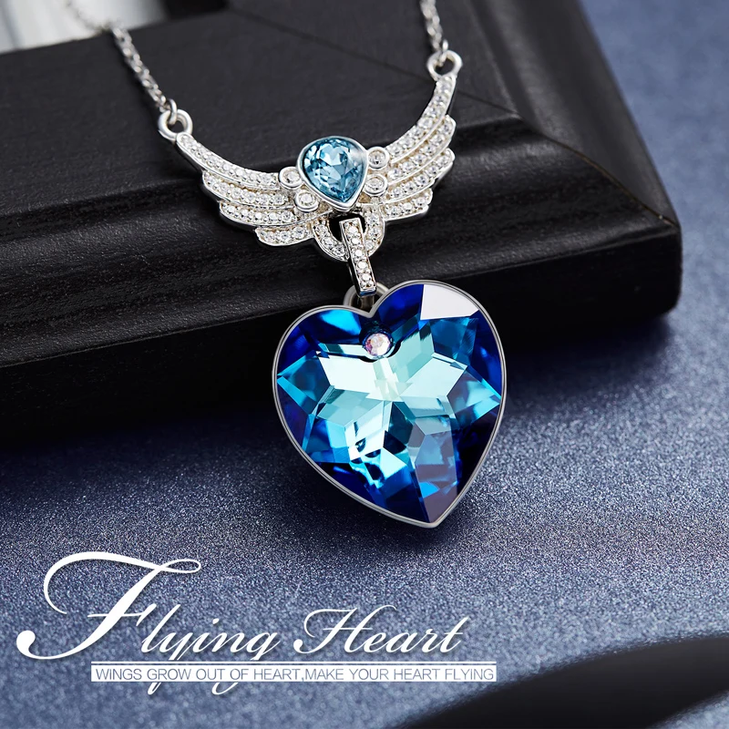 44% OFF!! CDE new S925 Sterling Silver Crystals from Swarovski Necklaces For Women fashion Heart wings blue light Fine Jewelry lover gifts
