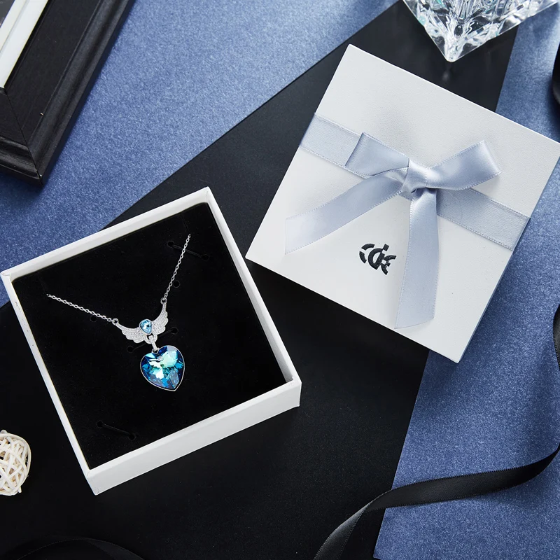 CDE new S925 Sterling Silver Crystals from Swarovski Necklaces For Women fashion Heart wings blue light Fine Jewelry lover gifts