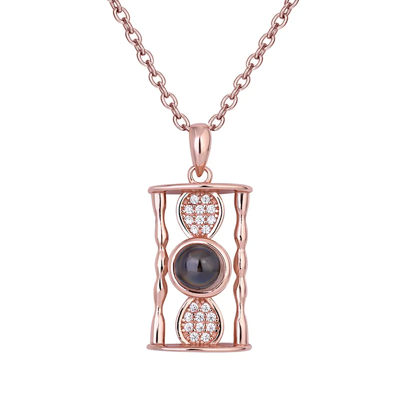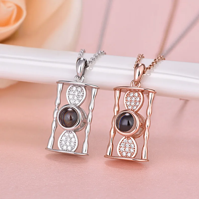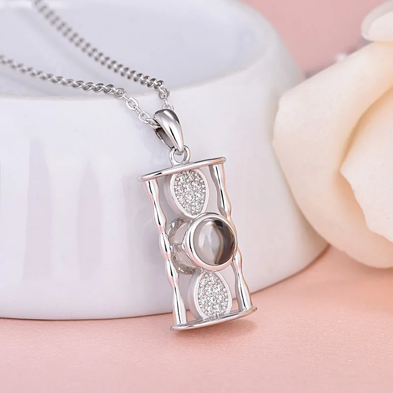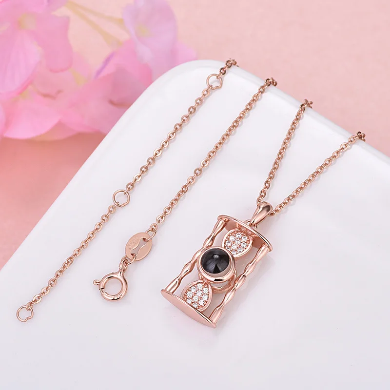 925 Sterling Silver 100 Languages I Love You Memory Necklace For Women Gold Sandglass Pendant Necklaces Valentines Day Gift