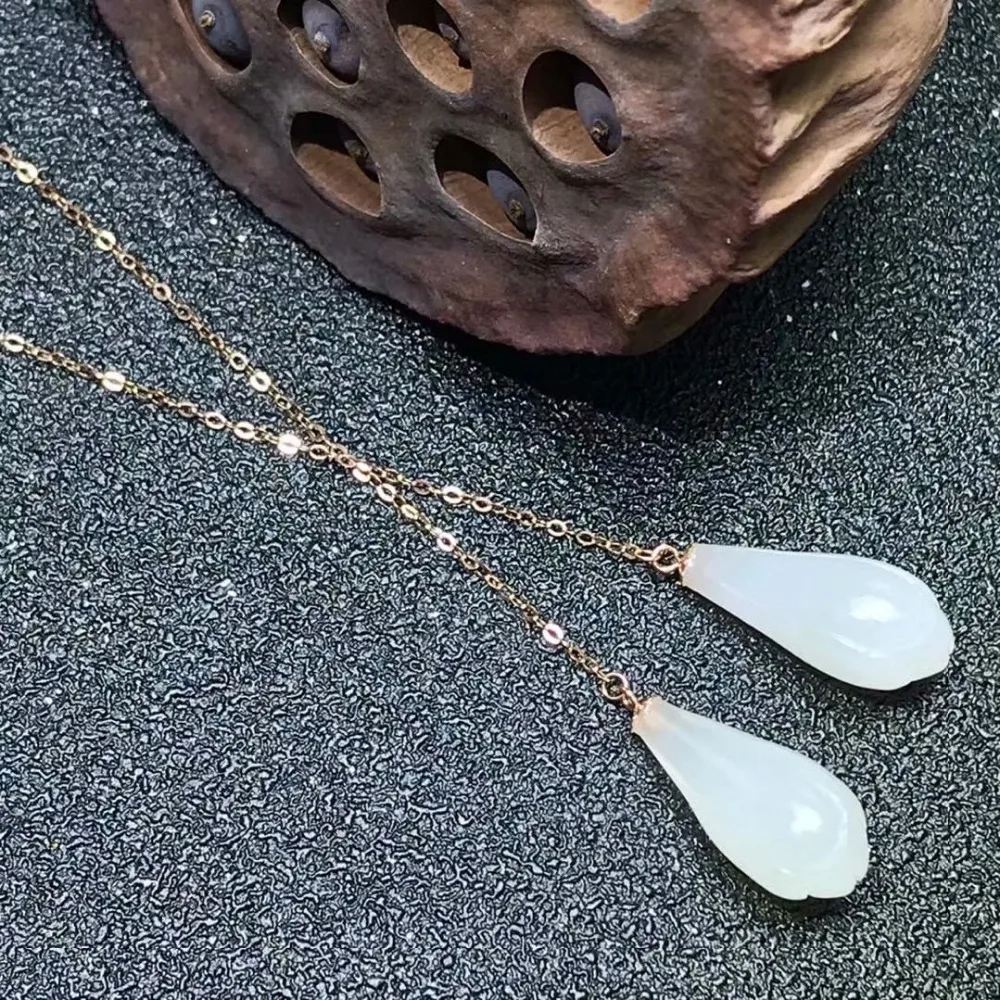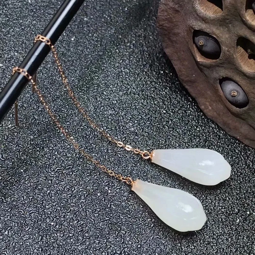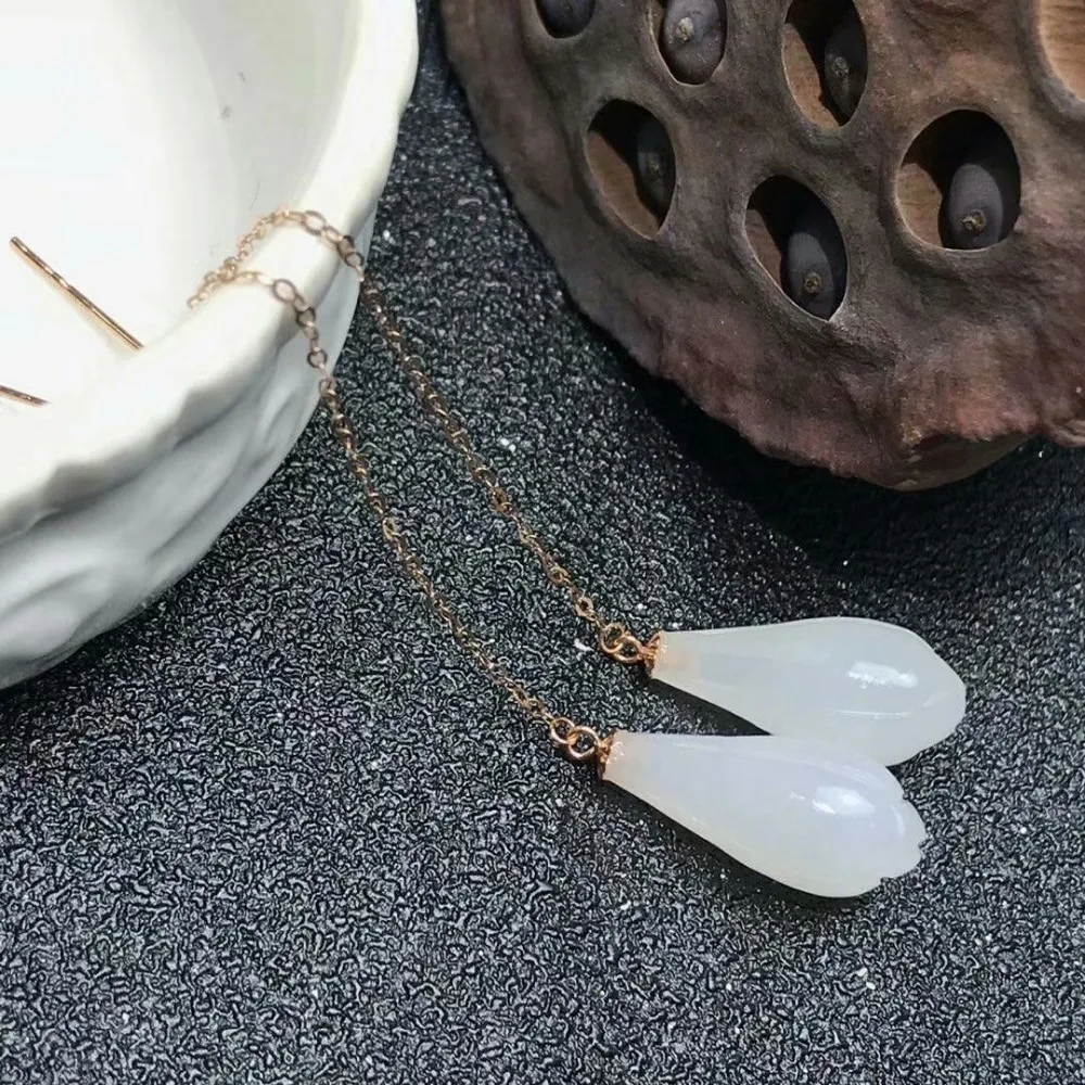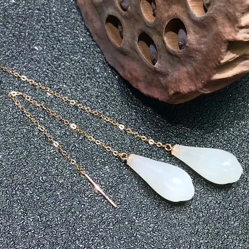 SHILOVEM 18k rose gold real Natural white Jasper drop earring classic fine Jewelry women wedding gift new 8*16mm myme0816hby