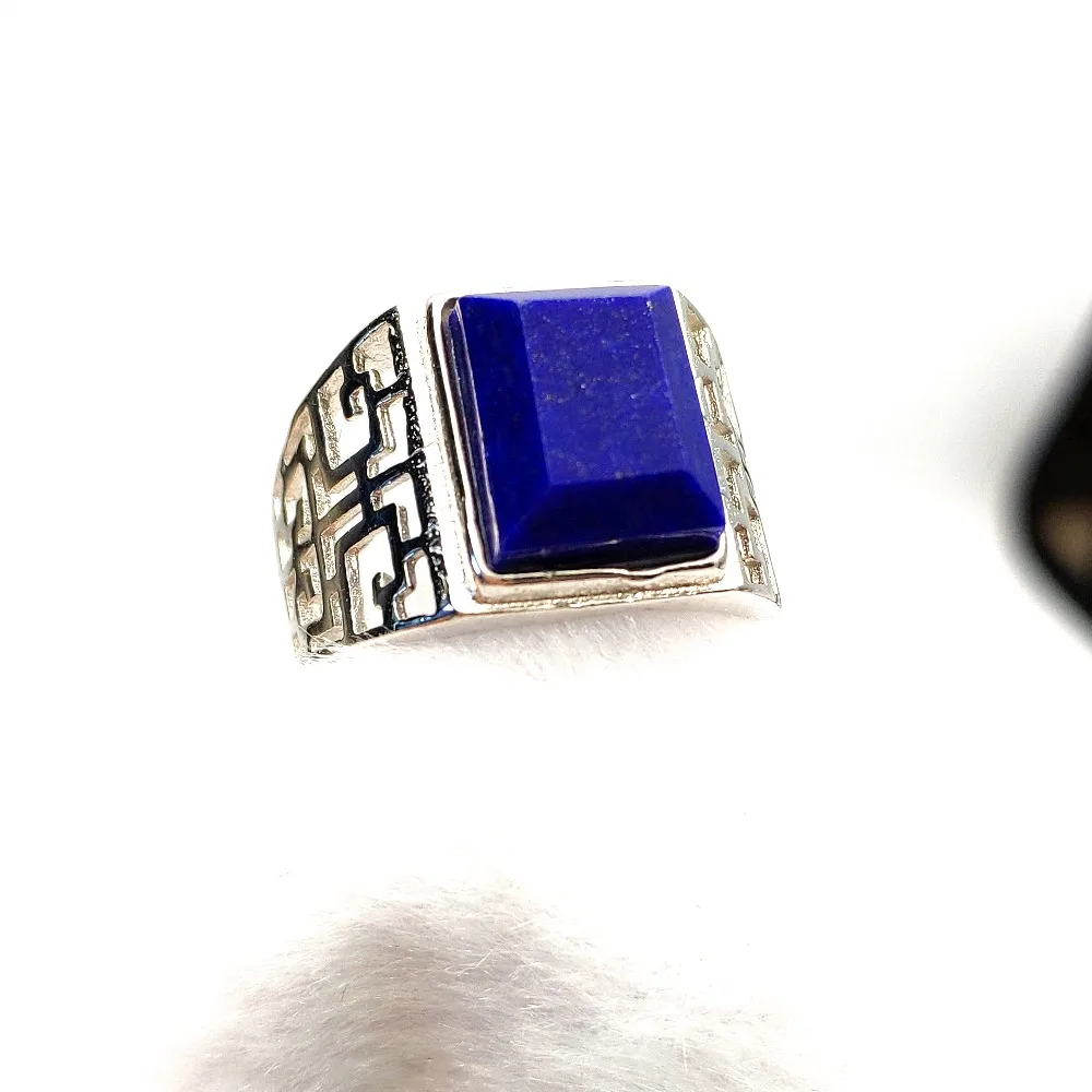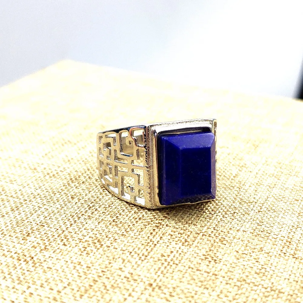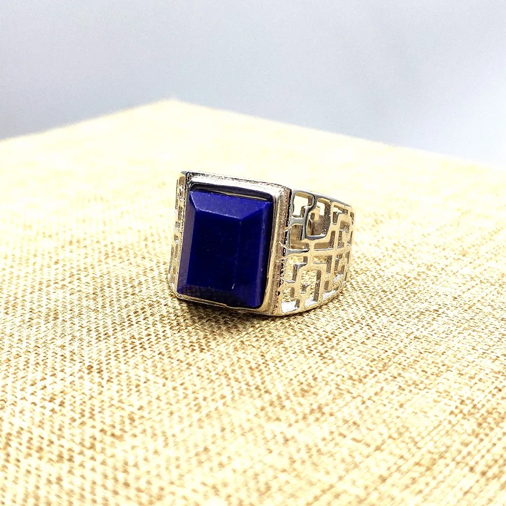 100% Natural Lapis Lazuli Royal Blue Adjustable Wedding Man Ring Newly Best Gemstone 14x11mm Beads Prayer Ring Woman Man AAAAA