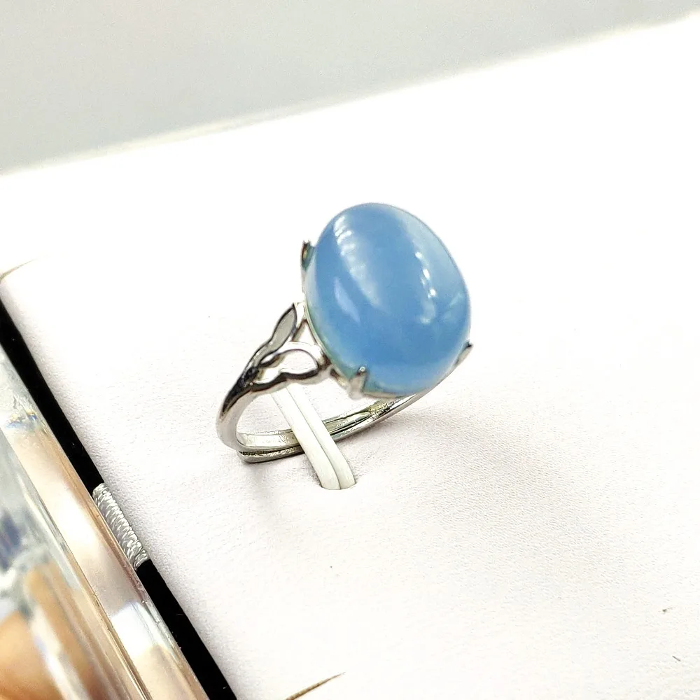 Top Natural Blue Aquamarine Ocean Woman Bead Ring 12x10mm Clear Adjustable Crystal Hot Stone Silver Drop Shipping AAAAA