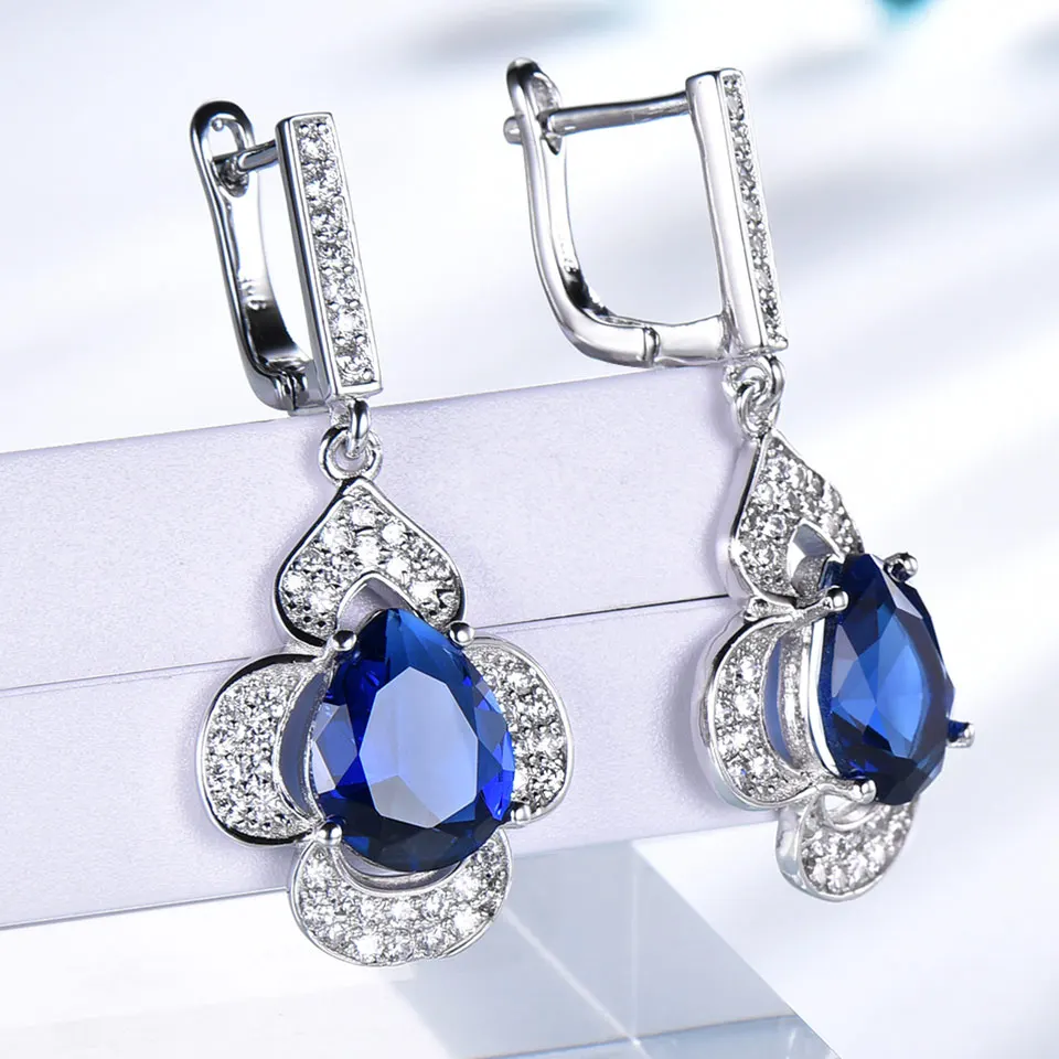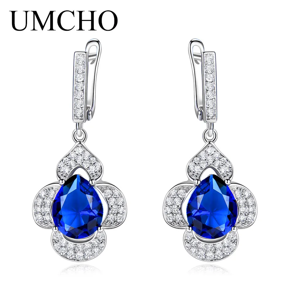 Limited Offer UMCHO Blue Sapphire Drop Earrings for Women Gemstone Genuine 925 Sterling Silver Fashionable Romantic Gift Engagement Jewelry
