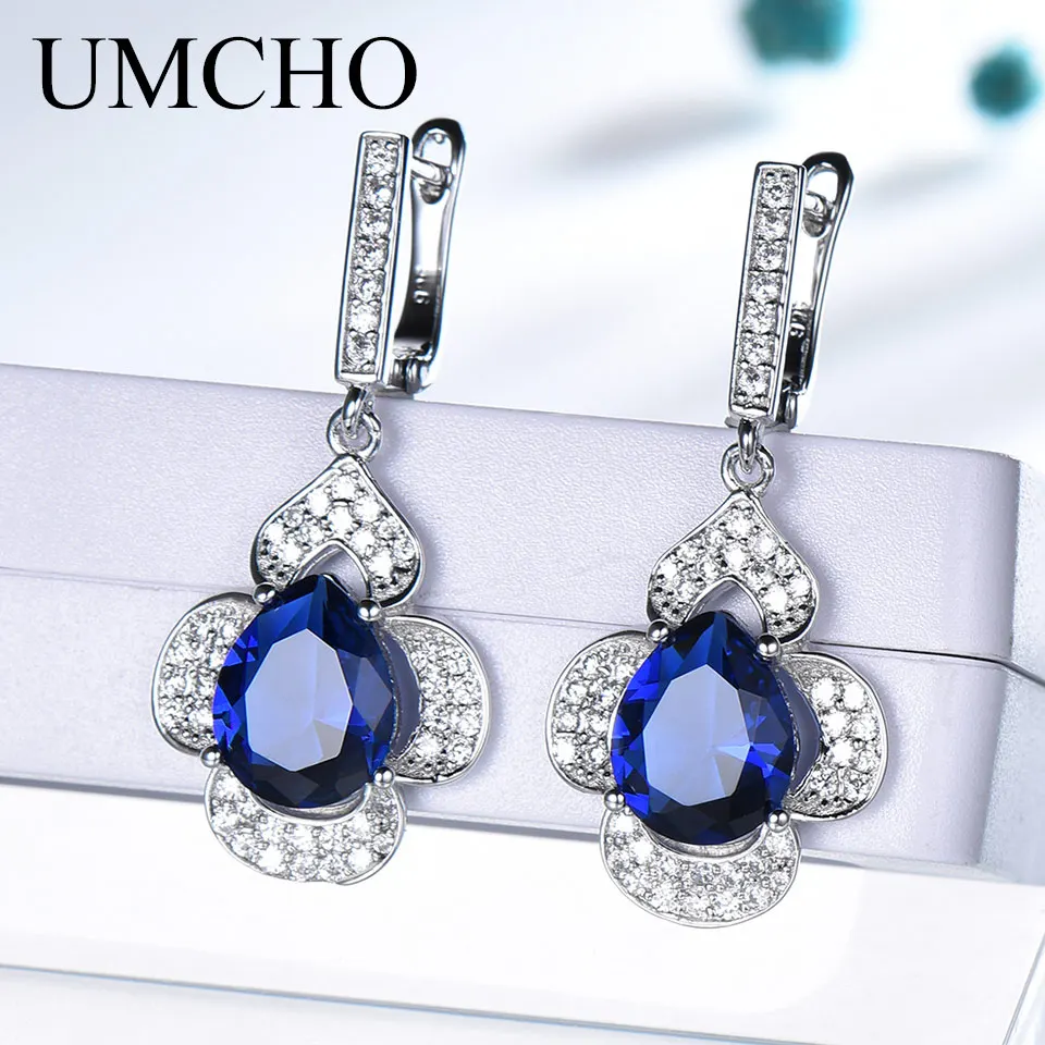 UMCHO Blue Sapphire Drop Earrings for Women Gemstone Genuine 925 Sterling Silver Fashionable Romantic Gift Engagement Jewelry